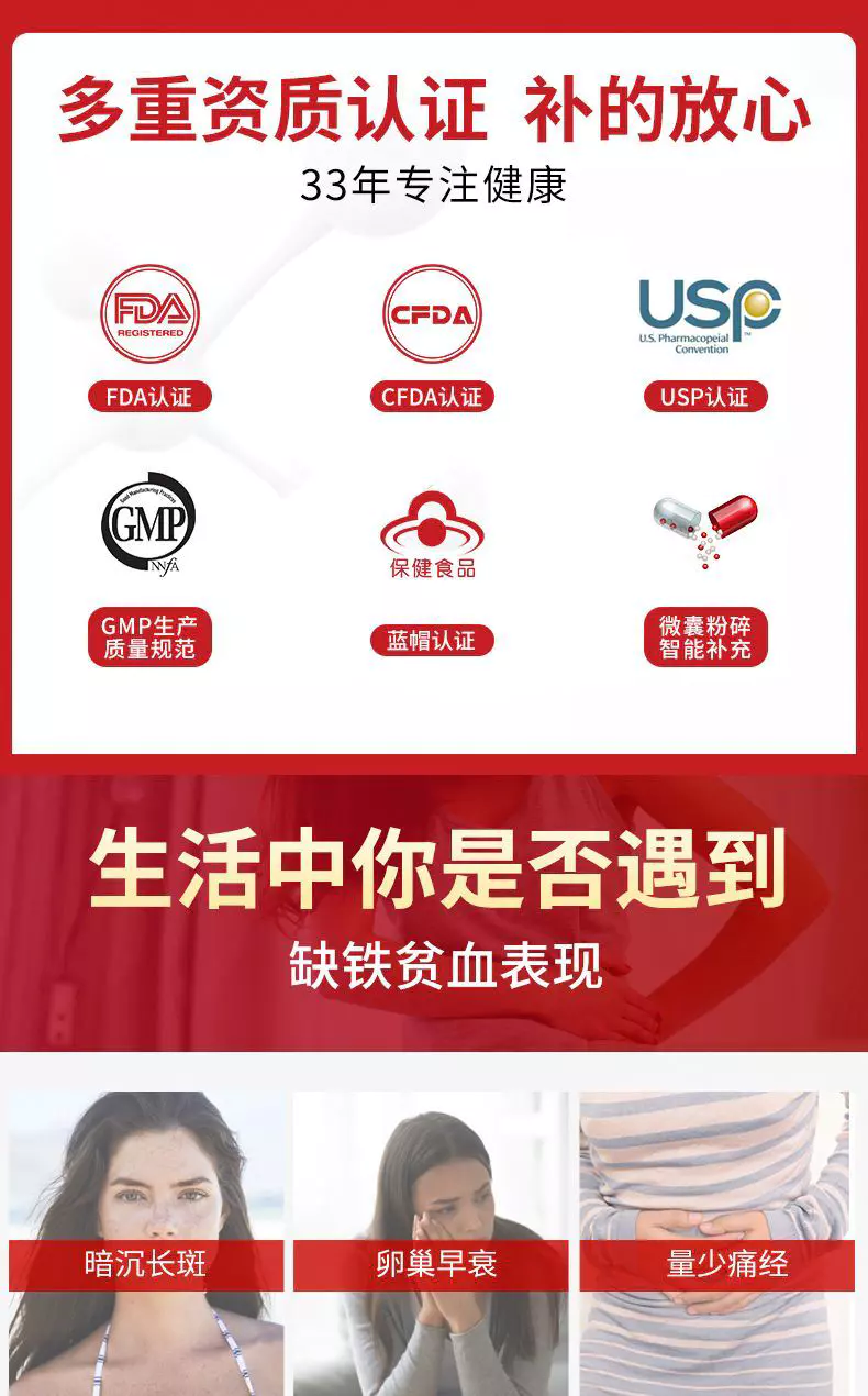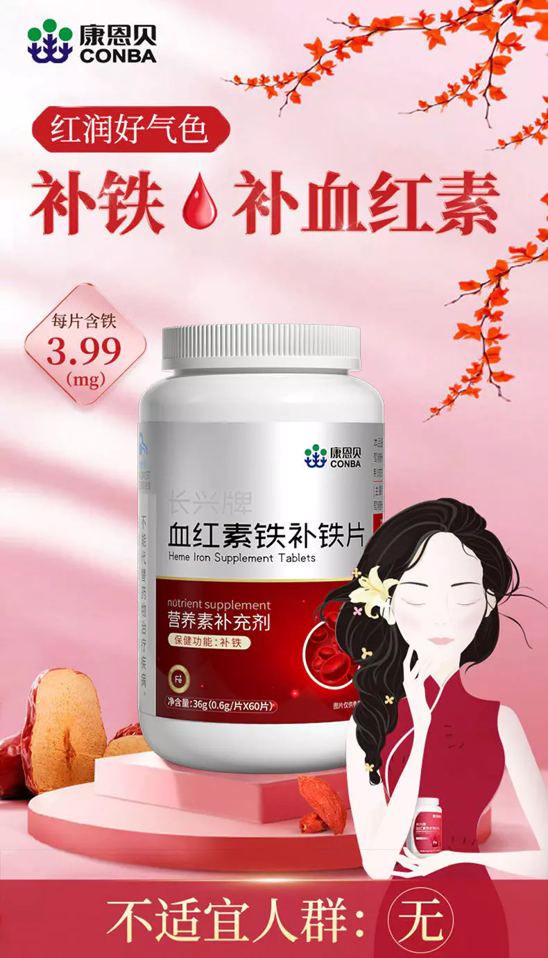 康恩贝血红素60粒补铁搭补气血女人养生调理两虚女性食品改善贫血
