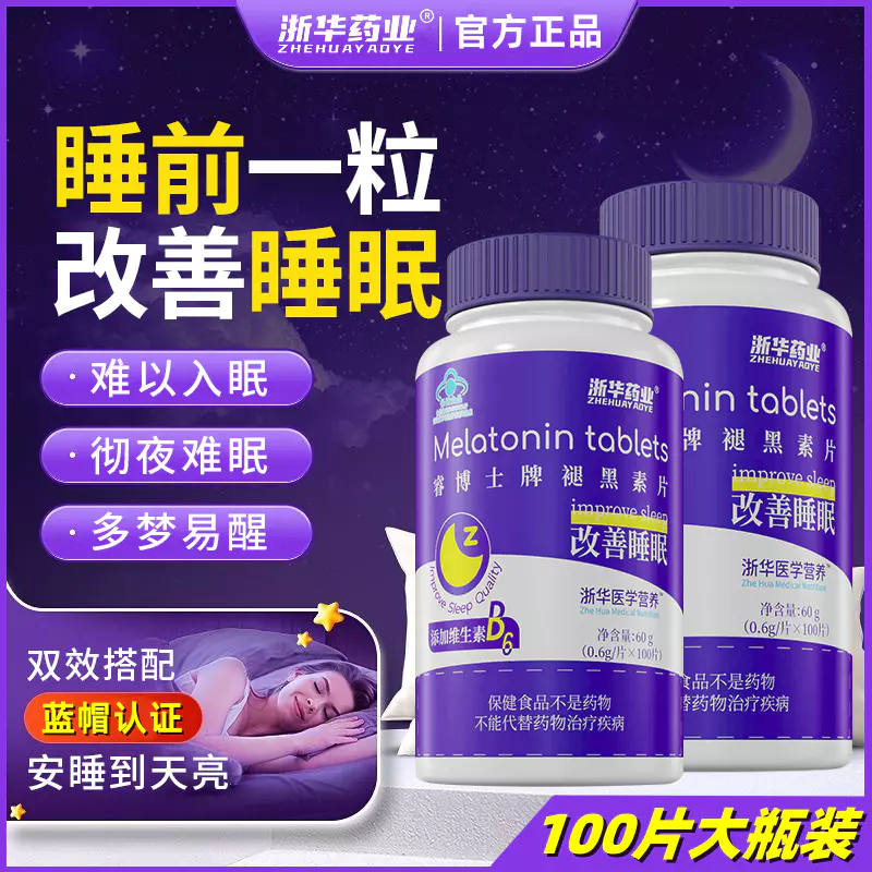 浙华药业褪黑素片100片/瓶维生素B6改善睡眠助眠安眠失眠